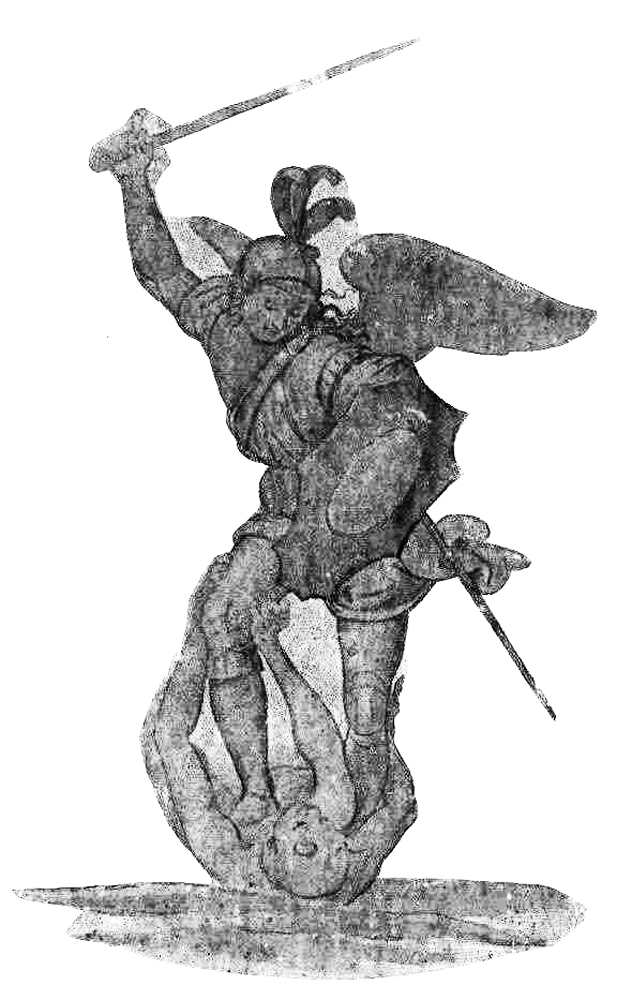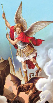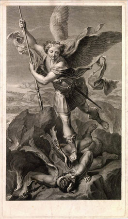 Erzengel Michael, den Satan bekämpfend |