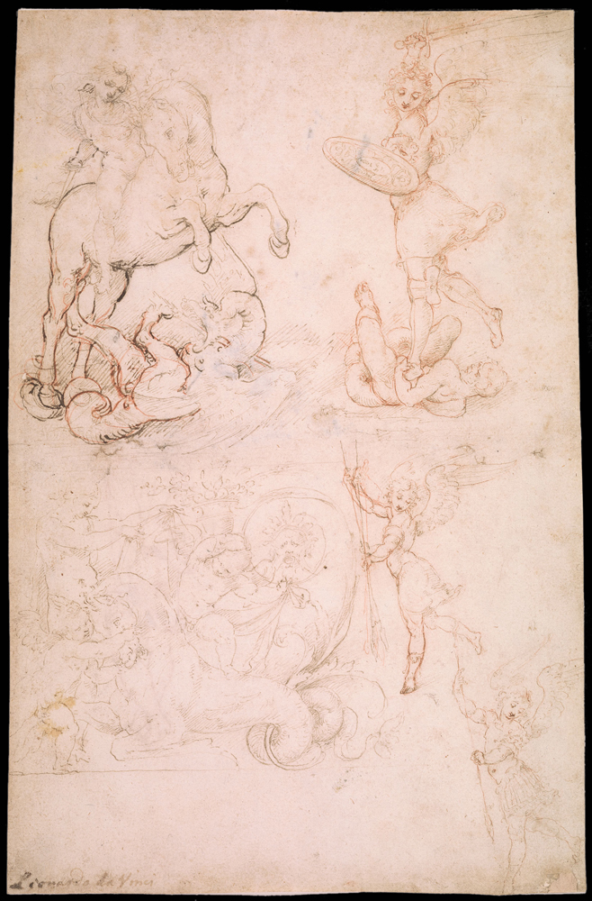 Studienblatt mit dem hl. Georg, dem Erzengel Michael und spielenden Putti |